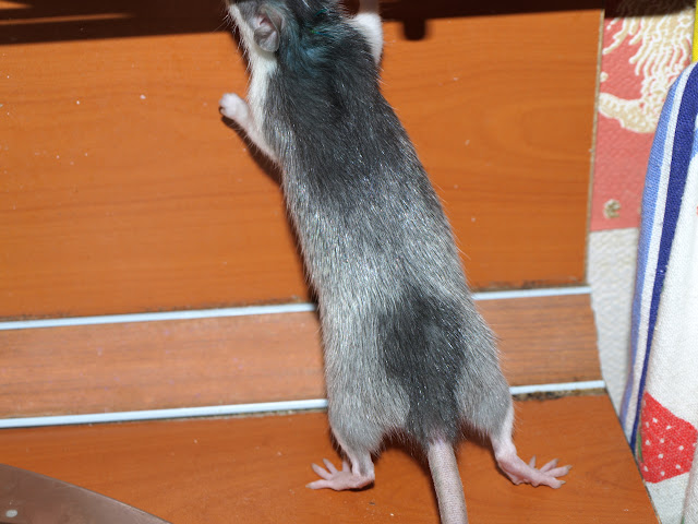 А сейчас и спина вся "перец с солью", и морда от носа светлеет. Только меду ушами и на холке (где не выстригали вокруг шва) темная шерсть осталась. А ей по моим прикидкам, должно быть месяца 2,5-3 от силы...