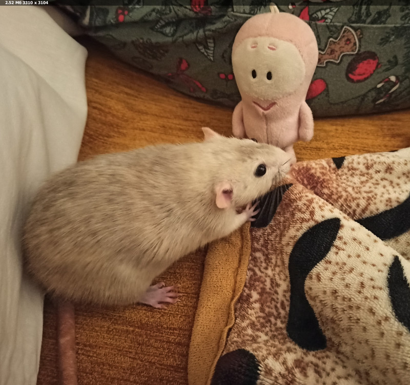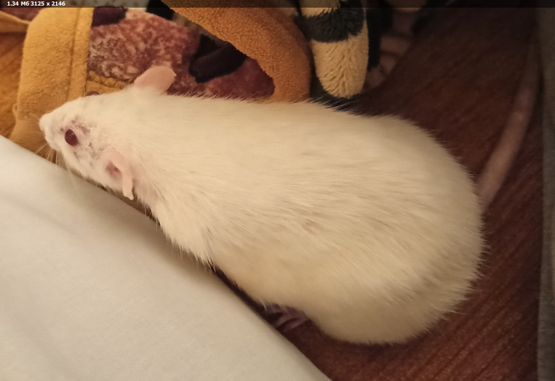 Добра всем. Собрался вот только сегодня, тяжело делиться грустными новостями. В январе не стало нашей серенькой Нюши, а 24 февраля, немного перейдя свои два годика ушла белая Сливушка. После лечения в ноябре прошлого года она себя хорошо чувствовала, двигалась, играла, общалась, словом не было никаких проблем ни с чем. Кушала хорошо, и в тот вечер дочка после общения с малышами вышла из комнаты, через какое-то время вернулась, а Сливушка лежит на боку, лапки как будто бежит, и без признаков жизни. Ничего её не мучило.. Не было никаких слышимых звуков, ничего. Просто за какое-то очень короткое время. Жаль нашу толстушку, теперь вот жду, по весне в лесу схороню, были при жизни вместе, пусть и дальше будут рядом, там наши питомцы лежат... Осталась в одиночестве чёрная Лунушка, знаем, что ей одной скучно, я пытаюсь убедить взять пару малышей, она старается уделять  внимание, но дочка сказала, что вряд ли будет брать ещё крысок, радости они много дают, но очень тяжело провожать их... Счастливые люди, кто увлечён этими маленькими умными чудиками, у кого есть время и возможность... Всем добра, счастья, здоровья питомцам!